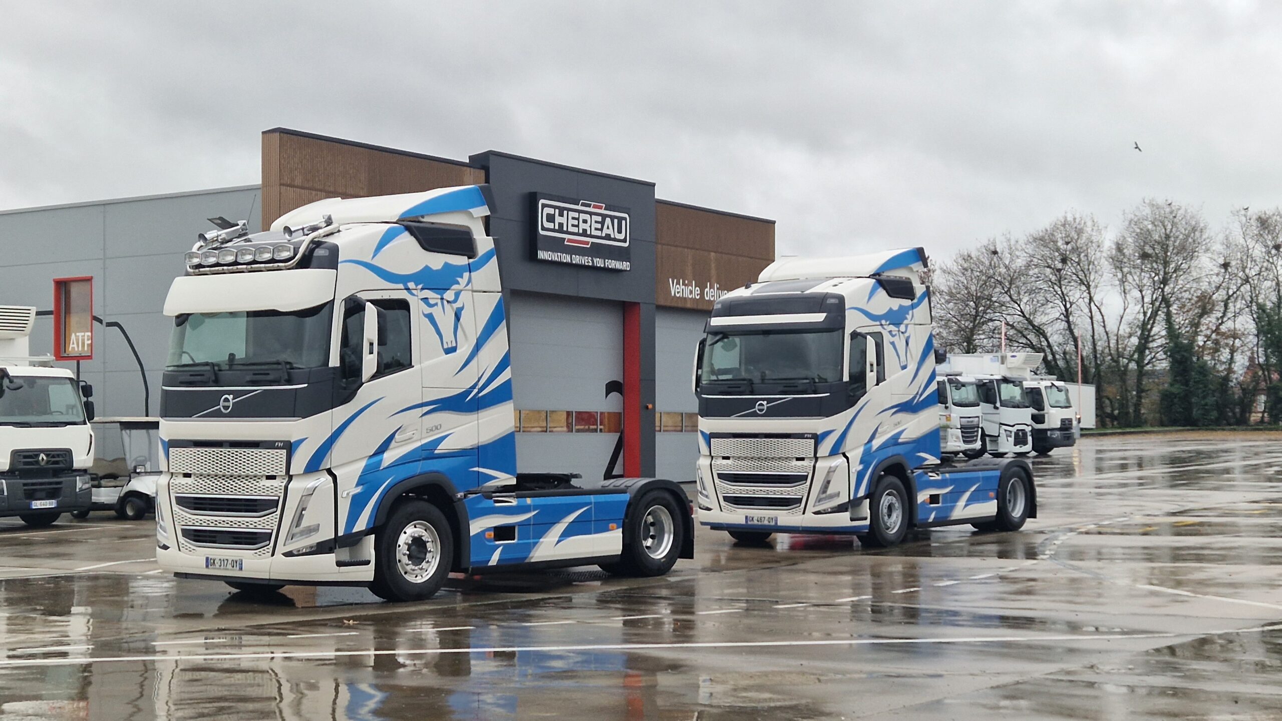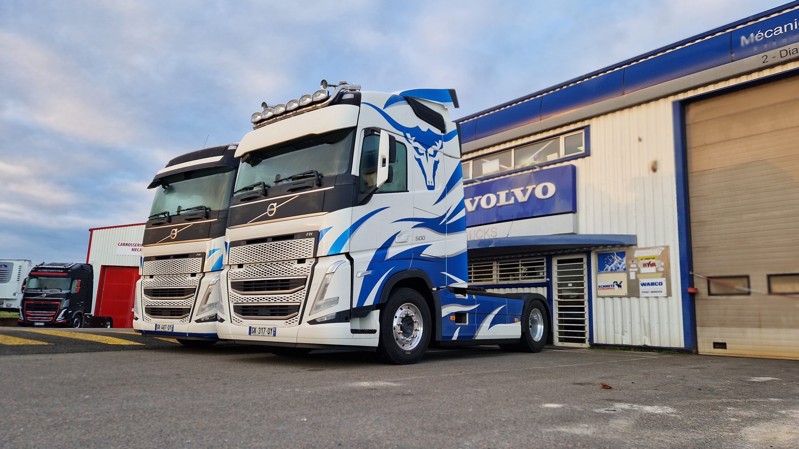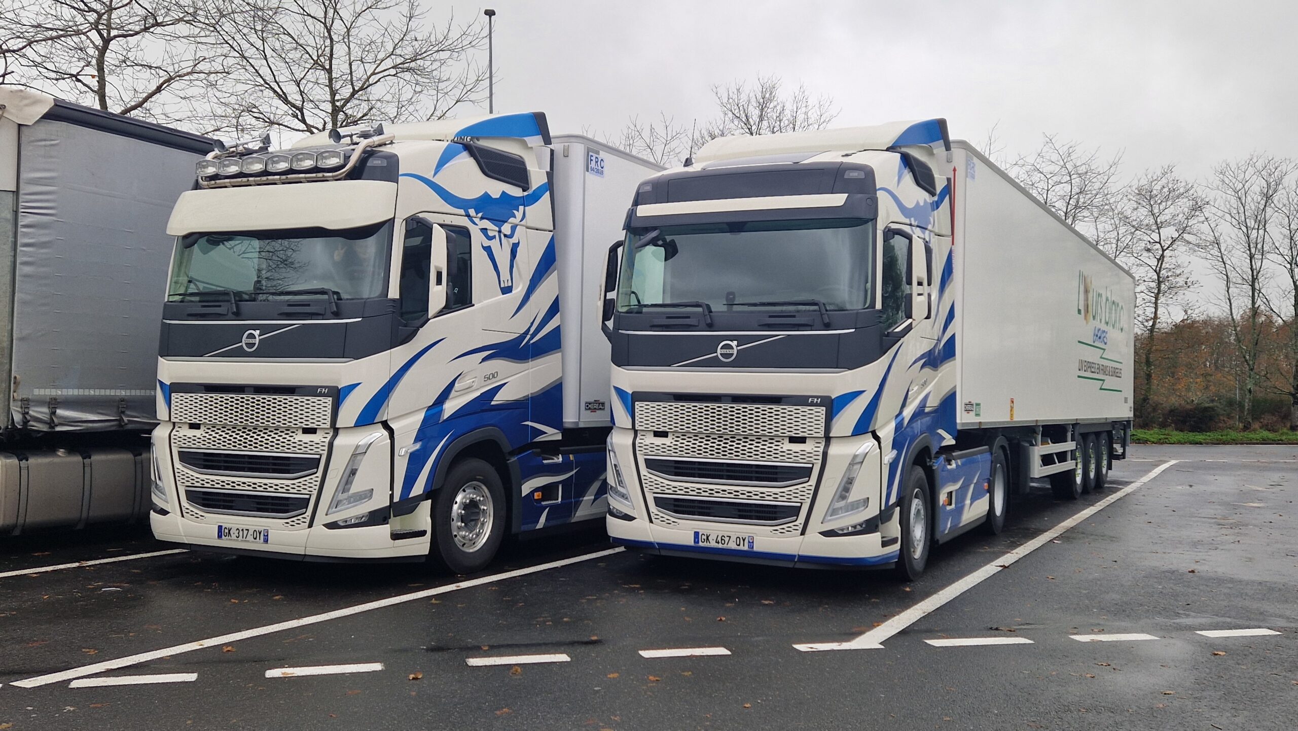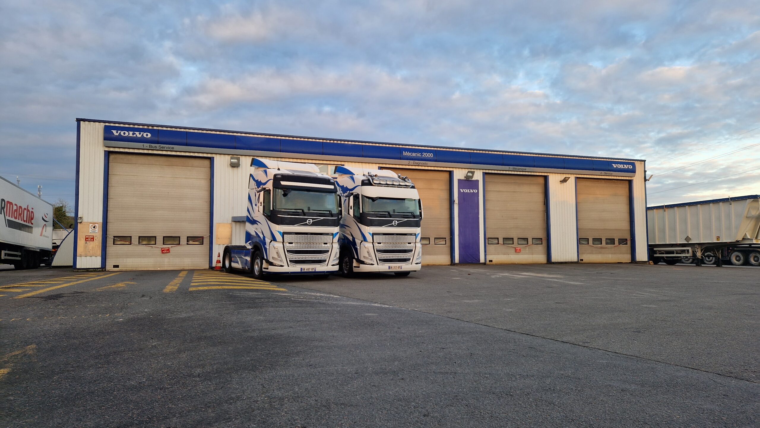 nous avons convoyé les deux camions neufs depuis chez Volvo – Mécanic 2000 à Barbezieux, en Charentes (16),