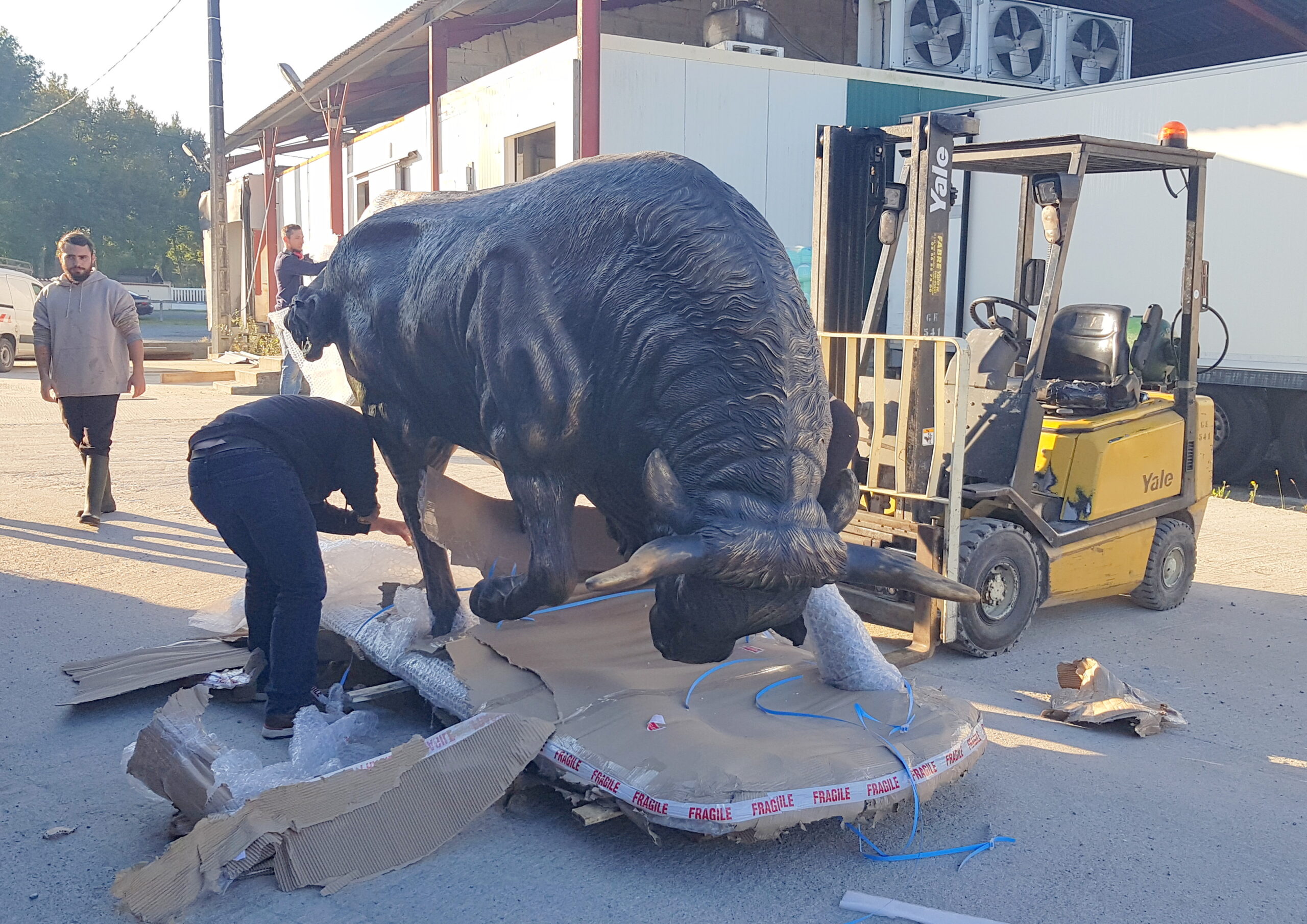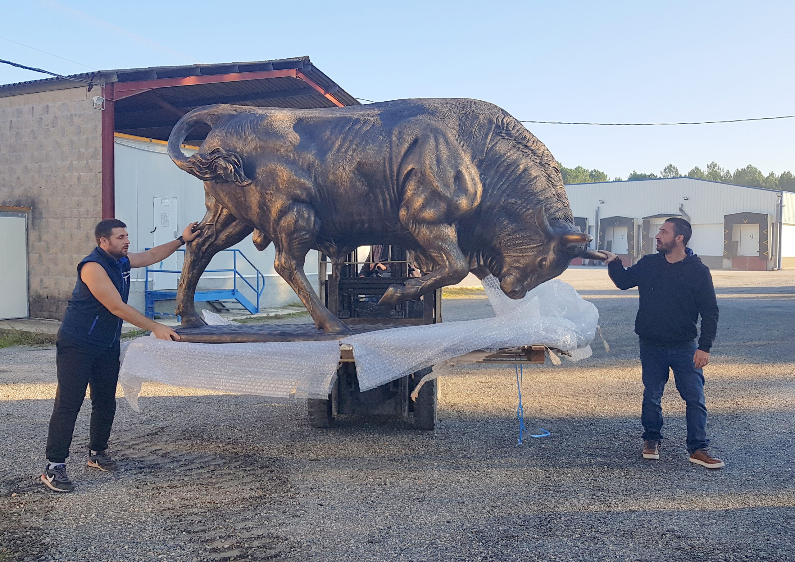 Un magnifique Taureau en résine, de couleur bronze, qui vient magnifier et embellir l’entrée de notre dépôt.