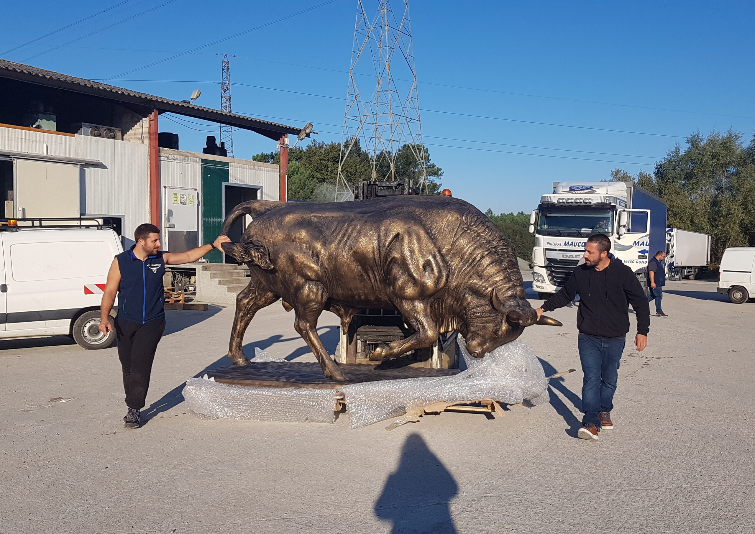 Un magnifique Taureau en résine, de couleur bronze, qui vient magnifier et embellir l’entrée de notre dépôt.